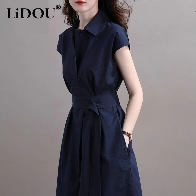 Release Date: Summer 2022 Closure Type: Lace Profile Type: A Fabric Type: Poplin Type: regular Age: Middle Age Place Of Origin: China (mainland) Model Number: dress Season: Summer Neckline: Turn-Down Collar Waistline: empire Sleeve Style: regular Dresses Length: Mid-Calf Decoration: Shirring Sleeve Length(cm): Short (4 – 16 Inch) Pattern Type: Solid Silhouette: A-LINE Style: Office Lady Material: COTTON,POLYESTER Gender: Women Origin: Mainland China Brand Name: LIDOU Elasticity: Non Strech Fit Type: Slim modname=ckeditor